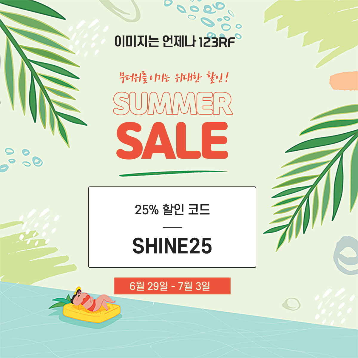 역대급 폭염이 온다는 소식과 함께 123RF에서 준비한 역대급 할인 소식 💚