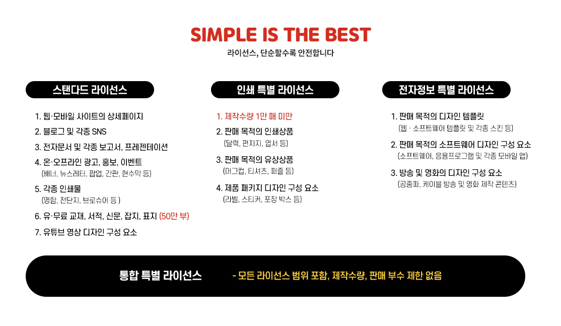 스톡 콘텐츠 서비스마다 라이선스가 상이하며 여러 라이선스를 운영할 수 있습니다.