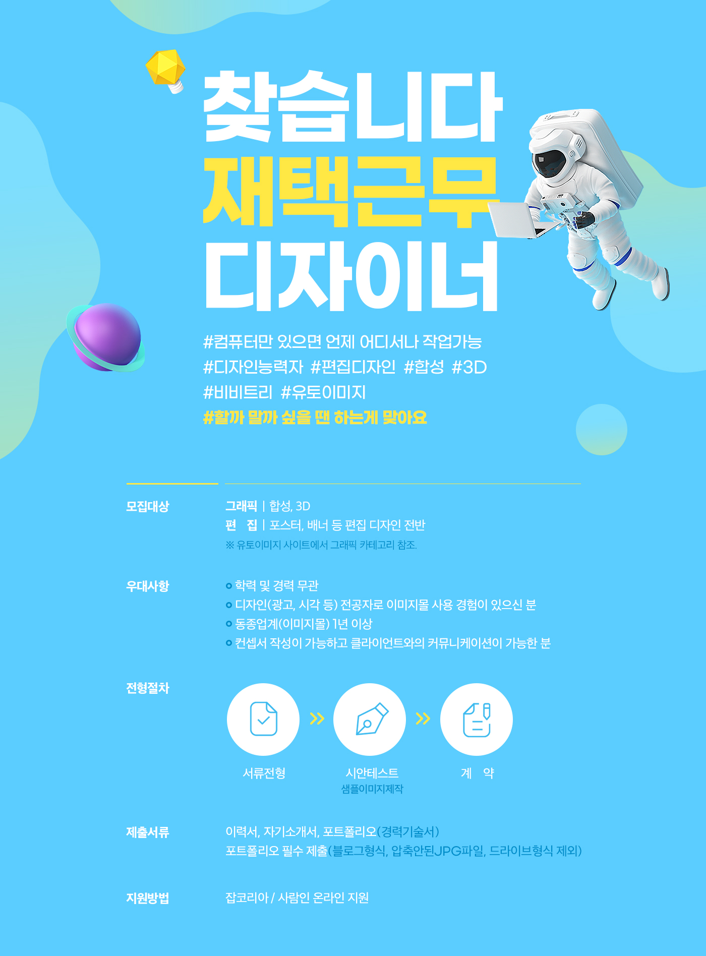 디자인 소스 제작 · 유통 플랫폼 '유토이미지'와 '123RF코리아'를 운영하는 비비트리에서 재택근무 디자이너를 모집합니다.🎨
