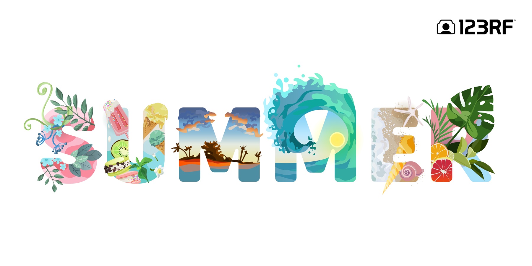 찜통더위가 일찍 찾아온 오래 여름! 그만큼 썸머 캠페인도 오래오래 운영될 것으로 보입니다. 오늘은 123RF에서 이벤트 헤더로 쓰기 적합한 여름 타이포그래피 / 텍스트 아트 일러스트를 모아 소개합니다. 태양처럼 강렬한 타이틀로 대중의 시선을 잡아 보세요.